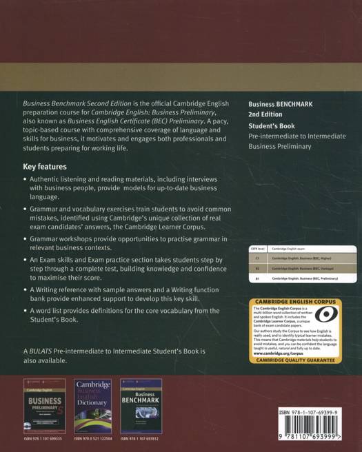 Business Benchmark Second edition is the official Cambridge English preparation course for Cambridge English: Business Preliminary, Vantage and Higher (also known as BEC), and BULATS.