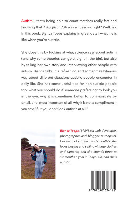 Autism - that's being able to count matches really fast and knowing that 7 August 1984 was a Tuesday, right? Well, no. In this book, Bianca Toeps explains in great detail what life is like when you're autistic.