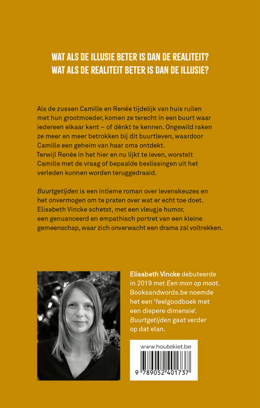 ‘Buurtgetijden’ is een intieme roman over levenskeuzes en het onvermogen om te praten over wat er echt toe doet. Elisabeth Vincke schetst, met een vleugje humor, een genuanceerd en empathisch portret van een kleine gemeenschap, waar zich onverwacht een drama zal voltrekken.