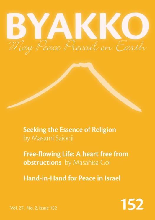 In "Seeking the Essence of Relgion", Masami Saionji discusses how human beings can move away from depending on religions, and instead look inward to create our lives, knowing that true spirituality resides within us. Masahisa Goi's "Free-flowing Life" looks at the meaning of 'true freedom' from a spiritual point of view. Also features reports on the Hand-in-Hand peace event in Israel (December 2019) and the online prayer gatherings held during the Covid-19 pandemic.