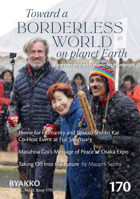 Our 170th issue highlights the special ceremony at Fuji Sanctuary held in partnership with the founders of Home for Humanity. Also features "Taking Off Into the Future" by Masami Saionji and a report on peace activities at the Osaka Expo.