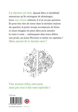 La réponse est non. Quand Alice et Archibald annoncent qu'ils envisagent de déménager, leurs sept enfants refusent, il n'en est pas question. Et pour être sûrs de rester dans la dernière maison du quartier, la petite troupe recomposée de frères et soeurs imagine les pires idées pour annuler la vente à venir... embarquant dans leurs délires une poule, un jeune Péruvien et même un capitaine ! Mais auront-ils le dernier mot ?