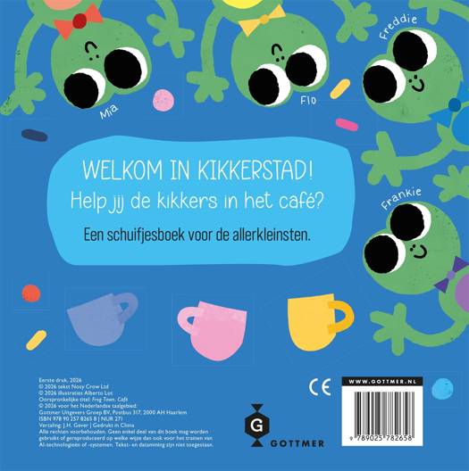 'Kikkerstad - Café' is een interactief kartonboek vol schuifjes waarin peuters zélf aan de slag gaan in een vrolijk kikkercafé. Welkom in Kikkerstad, een kleurrijke wereld waar elke dag iets nieuws te beleven valt.