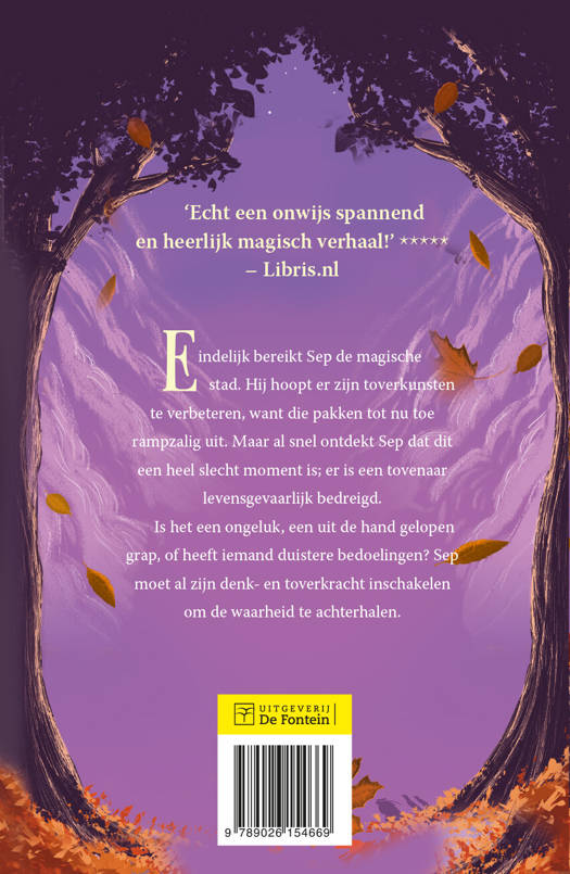 Eindelijk bereikt Sep de magische stad. Hij hoopt er zijn toverkunsten te verbeteren, want die pakken tot nu toe rampzalig uit. Maar al snel ontdekt Sep dat dit een heel slecht moment is; er is een tovenaar levensgevaarlijk bedreigd. Is het een ongeluk, een uit de hand gelopen grap, of heeft iemand duistere bedoelingen? Sep moet al zijn denk- en toverkracht inschakelen om de waarheid te achterhalen.