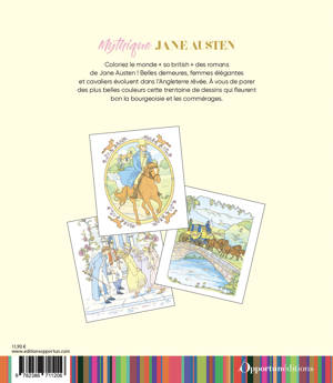 Coloriez le monde « so british » des romans de Jane Austen ! Belles demeures, femmes élégantes et cavaliers évoluent dans l’Angleterre rêvée. À vous de parer des plus belles couleurs cette trentaine de dessins qui fleurent bon la bourgeoisie et les commérages.