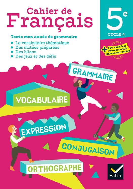 Une nouvelle collection de cahiers de français, pour un apprentissage méthodique et progressif. - Toutes les dimensions de la langue en 5 parties : Grammaire, Conjugaison et emplois des verbes, Orthographe, Vocabulaire, Expression écrite et orale. - Des leçons synthétiques faciles à mémoriser dans lesquelles l’élève vérifie sa compréhension - De nombreux exercices de difficulté graduée - Les trois compétences régulièrement entraînées : « J’applique pour lire », « J’applique pour dire », « J’applique pour écrire ». - Des pages spécifiques Dictées préparées et Méthode. - Des bilans auto-évalués pour vérifier ses acquis sur un ensemble de notions. - Des jeux et des défisà faire seul ou en binômes, pour rendre la grammaire ludique.