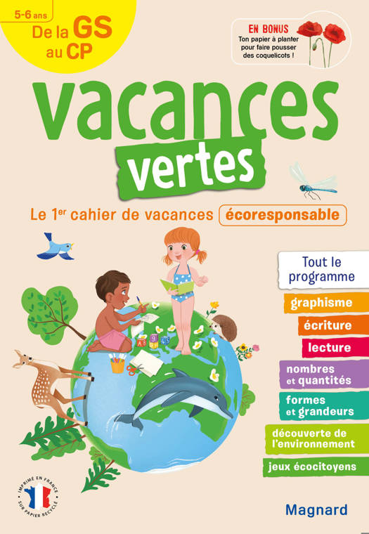 En bonus dans le cahier : du papier à planter pour faire pousser des coquelicots !