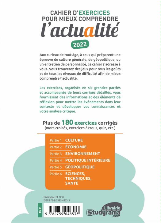 Un cahier d'exercices pour comprendre l'actualité, être capable de répondre aux questions, faire des passerelles entre les événements marquants, développer son esprit critique et faire la différence aux épreuves écrites et orales.