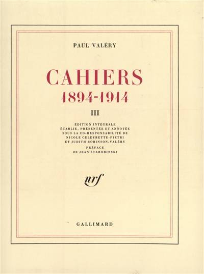 Le troisième volume de l'édition typographique intégrale des Cahiers 1894-1914, réalisé comme les précédents d'après les manuscrits originaux, révèle l'intéressante évolution de l'écriture valéryenne entre 1898 et 1900. Parallèlement au registre "Tabulae meae Tentationum", publié dans le tome II, Valéry poursuit un moment la rédaction du Système, cette méthode rigoureuse construite selon les besoins de son Moi, travaillant surtout ici à une étude de l'imagination qu'il nomme "Géométrie des images". Mais bientôt une autre voie se dessine et s'affirme dans deux importants cahiers inédits de 1900 : celle d'une prose abstraite littéraire, souvent d'allure aphoristique, instituant le fragment comme mode d'expression privilégié d'une pensée impatiente et toujours en acte. À travers l'écriture brève et la forme sous-jacente du recueil, on voit à l'oeuvre un esprit ouvert à tout ce que la connaissance de son époque pouvait lui apporter de démarches intellectuelles spécifiques. Valéry parle de métaphores en termes de logique, de libre association en termes de mathématiques, met en rapport les sensations et la physique, la théorie et le monde réel. On découvre à la fois l'élan d'une curiosité scientifique et logique, avide d'analogies éclairantes, et ce sens aigu de la modernité, cette sensibilité aux courants à venir de l'histoire intellectuelle qui font la force des Cahiers. Comme dans les volumes précédents, quelques pages typiques du manuscrit original sont reproduites en fac-similé. On trouvera en outre un étonnant inédit de jeunesse, l'Essai sur le Mortel, ainsi qu'un index analytique couvrant les trois premiers tomes.