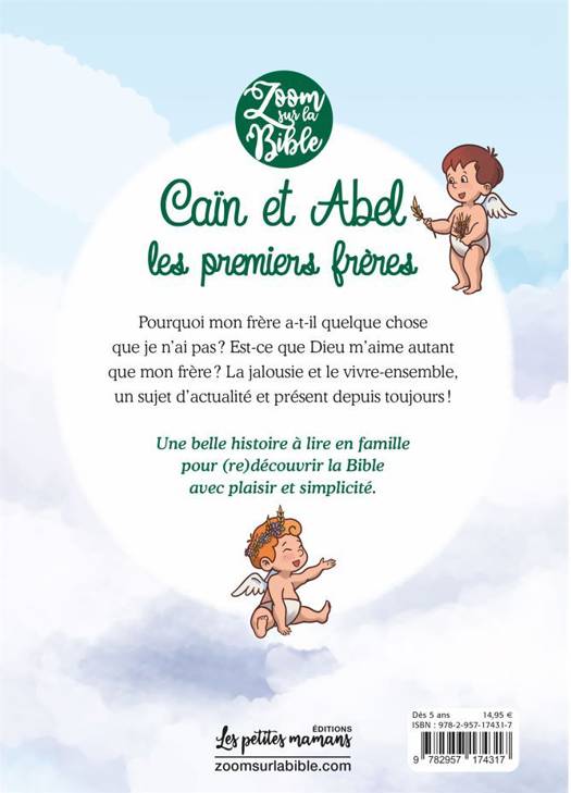 Zoom sur la Bible, c’est LA série qui raconte la Bible aux 5-10 ans. Voilà une vraie innovation dans la littérature jeunesse : des albums qui associent avec brio la modernité du format « série » et le respect du récit biblique. Une série pour lire la Bible…sans en avoir l’air ! Après leur sortie du jardin d’Eden, Adam et Eve ont deux fils, Caïn et Abel. Pourquoi mon frère a-t-il quelque chose que je n’ai pas ? Est-ce que Dieu m’aime autant que mon frère ? Caïn et Abel nous plongent dans une histoire intemporelle… La jalousie et le vivre-ensemble, un sujet d’actualité et présent depuis toujours!