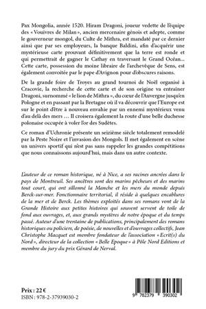 Histoire romancée où apparaît le Calcio, qui se passe en 1520. Hiram Dragoni, joueur vedette de l'équipe des « Vouivres de Milan », ancien mercenaire génois, adepte, comme le gouverneur mongol, du Culte de Mithra, est mandaté par ce dernier et par ses employeurs, la banque Baldini, afin d'acquérir une mystérieuse carte prouvant définitivement que la terre est ronde et qui permettrait de gagner le Cathay en traversant le Grand Océan... Cette carte, possession du moine libraire de l'archevêque de Sens, est convoitée par le pape d'Avignon pour d'obscures raisons. Il croisera également la route d'une belle duchesse polonaise occupée à voler l'or des Sudètes.