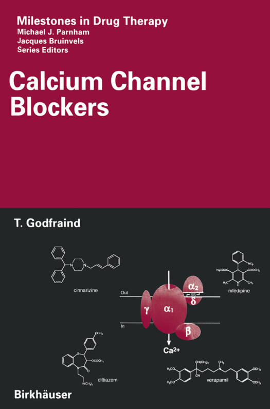 The drugs named calcium channel blockers (CCBs) were initially termed cal- cium antagonists (see Chapter 1). They are also designated as calcium entry blockers (CEBs), calcium blockers, calcium channel antagonists, calcium channel inhibitors (and in French anticalciques). As this is reported in several chapters of this book, their main effect is a blockade of calcium entry into cells through voltage operated calcium channels (VOCCs). Chemically related drugs, such as Bay K 8644, exert the opposite effect by increasing the proba- bility of calcium channel opening. One of the subcommittees of the Nomenclature Committee (NC-IUPAR) of the International Union of Pharmacology has been devoted to the classification of calcium channels and the site of action of drugs modifying channel function. The members of this Committee are noted for their significant contribution to the field (Tab. 1). A report has been published in 1992 in Pharmacological Reviews [3]. A list of criteria was approved for the identification of distinct drug binding 2 sites on Ca + channels. It included: (a) the demonstration of a stereoselective binding site supported by drug interaction studies (competition with other drugs, non-competitive interactions with other sites, reversal of inhibitory effects by channel activators); (b) demonstration of the electrophysiologieal effects of the drug and selectivity of action compared to other sites; (c) deter- mination of the affinity for the type and subtype of ion channel. These criteria have identified different classes of Ca antagonists (see Chapter 2).