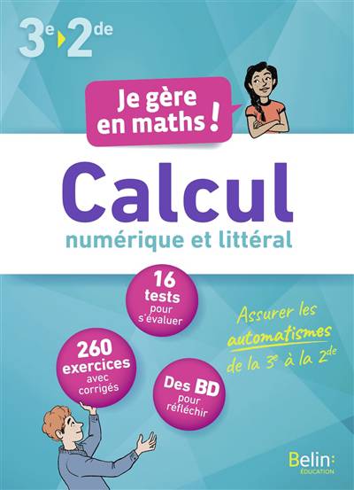Plus de 260 exercices de difficulté progressive, du niveau 3e a celui de 2 de, t'amèneront à renforcer tes compétences Enfin, des pages de tests t'inviteront à évaluer tes automatismes. Ce cahier traite tous les points de difficultés que tu peux rencontrer en calcul pour t'aider a réussir.