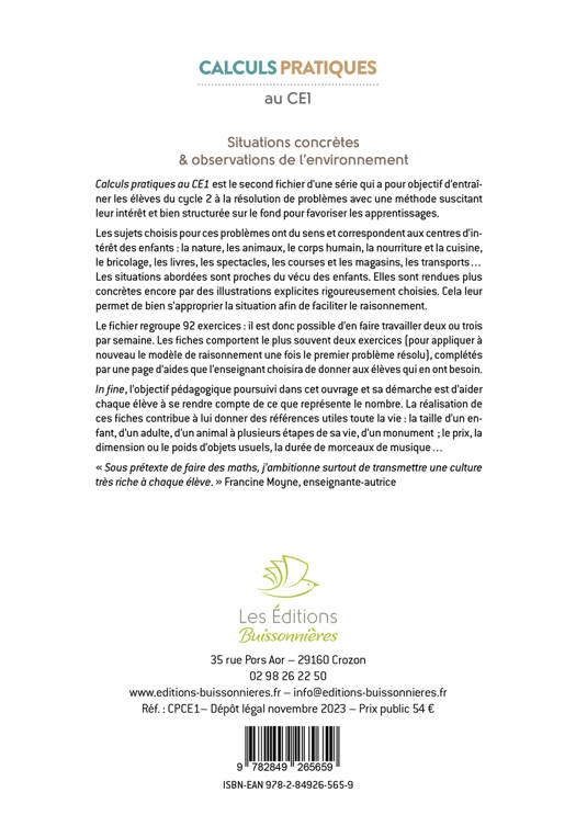 Calculs pratiques au CE1 est le deuxième fichier d’une série pour le cycle 2 qui a pour objectif d’entraîner les élèves à la résolution de problèmes. L’ouvrage s’inspire et remplace Calculs pratiques au cycle 2, Les Éditions Buissonnières ISBN 978-2-84926-032-6.