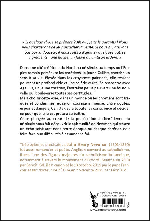 Ce roman de Newman nous plonge au coeur de la persécution anti-chrétienne et offre une authentique reconstitution de l'Afrique proconsulaire du IIIe siècle.