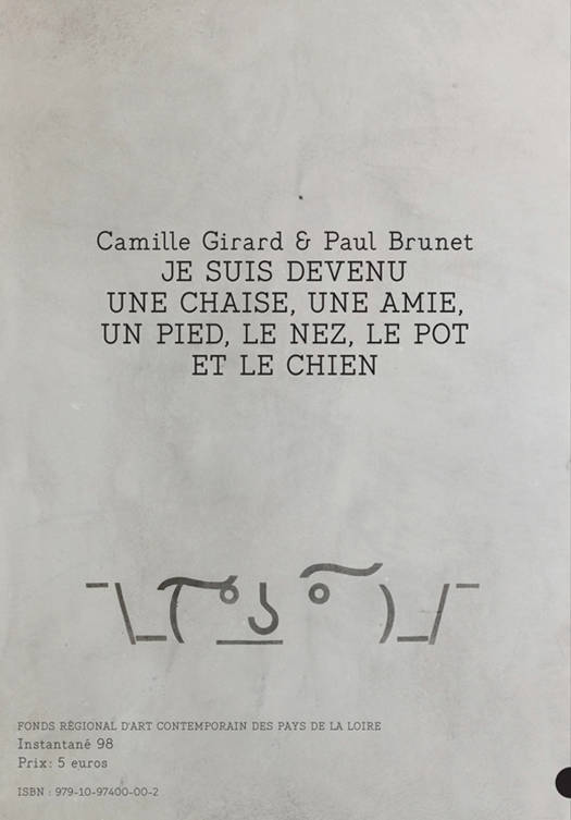 Camille Girard & Paul Brunet ont pris l’habitude de voler au paysage qui les entoure des détails insolites. Couple à la ville comme à la scène, le duo a fait depuis dix ans de son espace domestique le sujet de ses dessins, toujours réalisés d’après photographie. Pour cette première exposition personnelle au Frac des Pays de la Loire (du 17 novembre 2018 au 20 février 2019), les artistes improvisent une fugue dans le Grand Ouest. Tous les dessins dévoilés sont inédits et issus d’explorations hors de l’atelier. Ils ont mis de côté la nostalgie de l’adolescence pour démasquer les joyeux «échos» du monde. Aquarelles et lavis d’encre semblent tout droit sortis d’un carnet de bord dont les sujets empruntent aux genres de la nature morte, du fanzine ou de l’album de vacances. Agrémentée d’un texte de Joëlle Bacchetta, ce petit catalogue rend compte de cette exposition au FRAC Pays de la Loire et des différentes œuvres présentées.