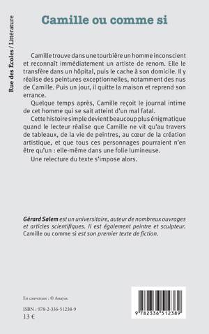 Camille trouve dans une tourbière un homme inconscient et reconnaît immédiatement un artiste de renom. Elle le transfère dans un hôpital, puis le cache à son domicile. Il y réalise des peintures exceptionnelles, notamment des nus de Camille. Puis un jour, il quitte la maison et reprend son errance. Quelque temps après, Camille reçoit le journal intime de cet homme qui se sait atteint d’un mal fatal. Cette histoire simple devient beaucoup plus énigmatique quand le lecteur réalise que Camille ne vit qu’au travers de tableaux, de la vie de peintres, au cœur de la création artistique, et que tous ces personnages pourraient n’en être qu’un : elle-même dans une folie lumineuse. Une relecture du texte s’impose alors.