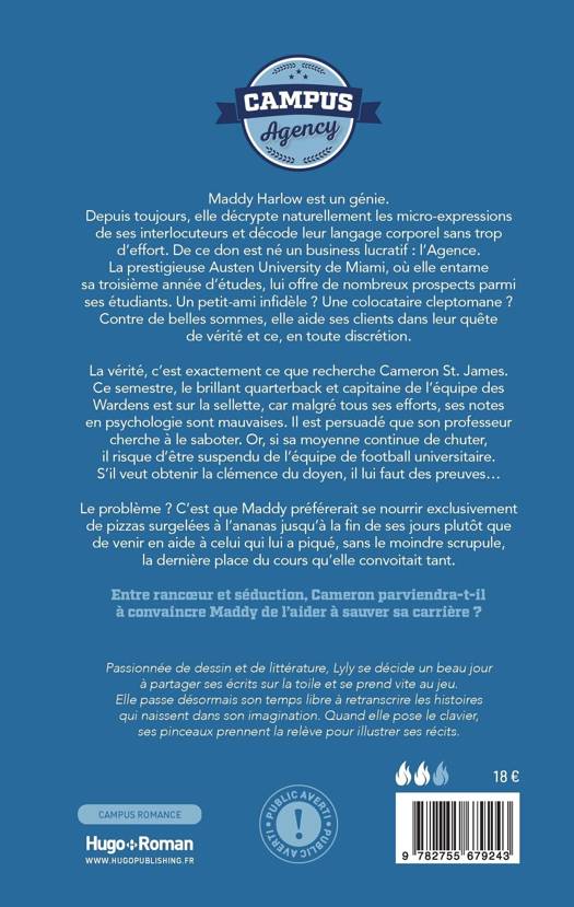 Depuis toujours, elle décrypte naturellement les micro-expressions de ses interlocuteurs et décode leur langage corporel sans trop d’effort. De ce don est né un business lucratif : l’Agence. La prestigieuse Austen University de Miami, où elle entame sa troisième année d'étude, lui offre de nombreux prospects parmi ses étudiants. Un petit-ami infidèle ? Une colocataire cleptomane ? En échange de belles sommes, elle aide ses clients dans leur quête de vérité et ce, en toute discrétion.