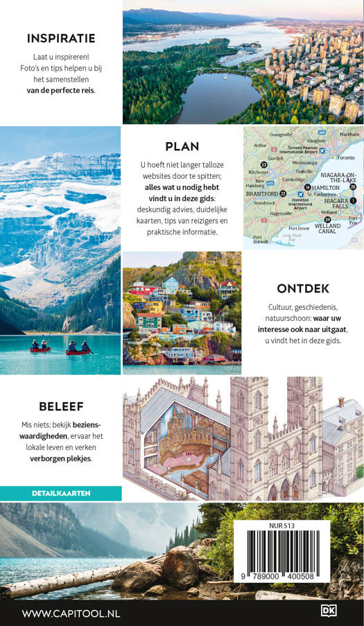 Deze reisgids verdeelt Canada in veertien regio’s: van Toronto tot Yukon en van Vancouver Island tot Newfoundland en Labrador. Bewonder de spectaculaire watervallen van de Niagara Falls, spot walvissen aan de kust, maak een hike door Banff National Park of verdwaal tussen de enorme wolkenkrabbers van Toronto: deze gids toont je de parels van Canada.