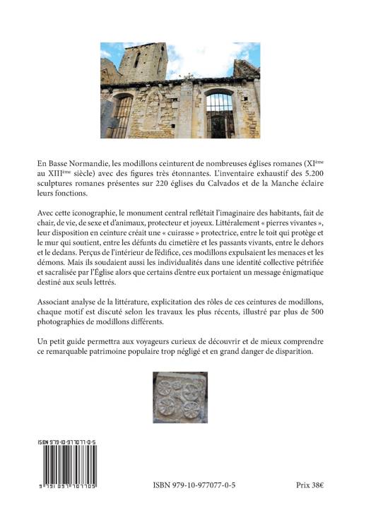 En Basse Normandie, les modillons ceinturent de nombreuses églises romanes (XIème au XIIIème siècle) avec des figures très étonnantes. L’inventaire exhaustif des 5.200 sculptures romanes présentes sur 220 églises du Calvados et de la Manche éclaire leurs fonctions. Avec cette iconographie, le monument central re était l’imaginaire des habitants, fait de chair, de vie, de sexe et d’animaux, protecteur et joyeux. Littéralement « pierres vivantes », leur disposition en ceinture créait une « cuirasse » protectrice, entre le toit qui protège et le mur qui soutient, entre les défunts du cimetière et les passants vivants, entre le dehors et le dedans. Perçus de l’intérieur de l’édifice, ces modillons expulsaient les menaces et les démons. Mais ils soudaient aussi les individualités dans une identité collective pétrifiée et sacralisée par l’Église alors que certains d’entre eux portaient un message énigmatique destiné aux seuls lettrés. Associant analyse de la littérature, explicitation des rôles de ces ceintures de modillons, chaque motif est discuté selon les travaux les plus récents, illustré par plus de 500 photographies de modillons différents. Un petit guide permettra aux voyageurs curieux de découvrir et de mieux comprendre ce remarquable patrimoine populaire trop négligé et en grand danger de disparition.