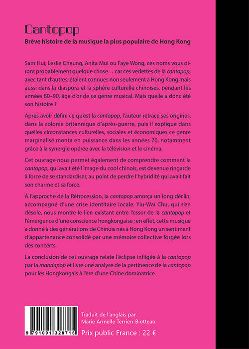 À l’approche de la Rétrocession, la cantopop amorça un long déclin, accompagné d’une crise identitaire locale. Yiu-Wai Chu, qui s’en désole, nous montre le lien existant entre l’essor de la cantopop et l’émergence d’une conscience hongkongaise ; en effet, cette musique a donné à des générations de Chinois nés à Hong Kong un sentiment d’appartenance consolidé par une mémoire collective forgée lors des concerts.
