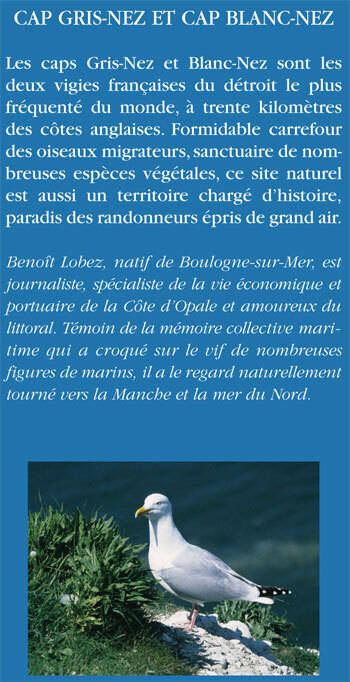 Les caps Gris-Nez et Blanc-Nez sont les deux vigies françaises du détroit le plus fréquenté du monde, à trente kilomètres des côtes anglaises. Formidable carrefour des oiseaux migrateurs, sanctuaire de nombreuses espèces végétales, ce site naturel est aussi un territoire chargé d'histoire, paradis des randonneurs épris de grand air.