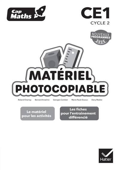 Du matériel (jeux de cartes, unités et bandes de mesure de longueurs, gabarits, etc.) destiné à faciliter la mise en place des activités, des fiches pour un entraînement différencié et des bilans périodiques.