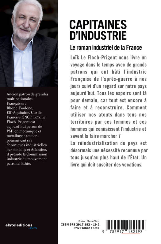 Loïk Le Floch-Prigent nous livre un voyage dans le temps avec de grands patrons qui ont bâti l'industrie Française de l'après-guerre à nos jours suivi d'un regard sur notre pays aujourd'hui. Tous les espoirs sont là pour demain, car tout est encore à faire et à reconstruire. Comment utiliser nos atouts dans tous nos territoires par ces femmes et ces hommes qui connaissent l'industrie et savent la faire marcher ?