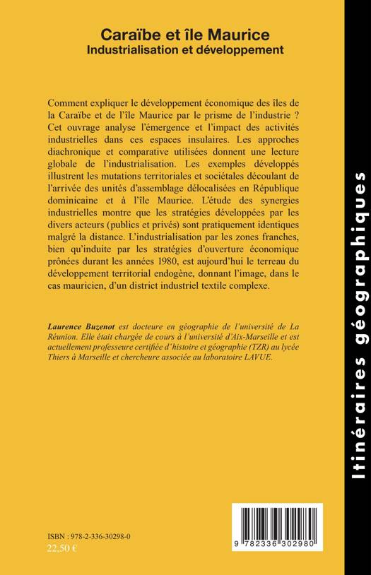 Comment expliquer le développement économique des îles de la Caraïbe et de l'île Maurice par le prisme de l'industrie ? Cet ouvrage analyse l'émergence et l'impact des activités industrielles dans ces espaces insulaires. L'industrialisation par les zones franches est aujourd'hui le terreau du développement territorial endogène.