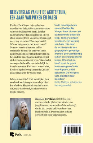 Evelien De Vlieger is jeugdauteur, moeder van drie puberzonen en vrouw van een drukbezette man. Zonder aanwijsbare reden belandde ze in een staat van verdriet. Voelde een burn-out zo, vroeg ze zich af. Een depressie? Of was het gewoon het leven maar? Om niet verder uiteen te vallen verhuisde ze naar de caravan in de achtertuin. Ze sleepte het ene boek na het andere naar haar schuilhol en liet zich troosten en inspireren. Via allerlei omwegen belandde ze uiteindelijk in haar binnenste. Een kaart was er niet, ze legde de weg tastend af, maar zoals altijd was de weg de reis.
