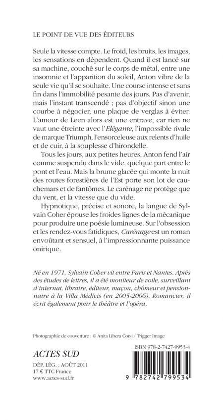 Hypnotique, précise et sonore, la langue de Sylvain Coher épouse les froides lignes de la mécanique pour produire une poésie lumineuse. Sur l'obsession et les rendez-vous fatidiques, «Carénage »est un roman envoûtant et sensuel, à l'impressionnante puissance onirique.