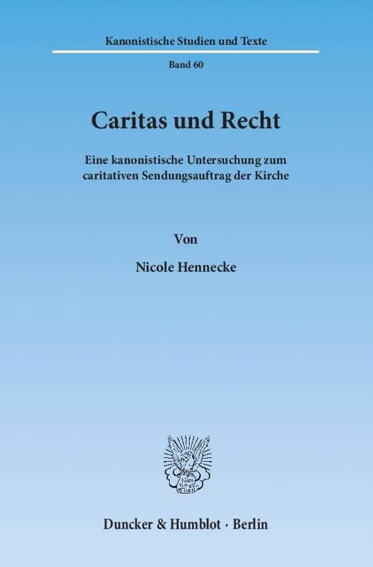 Wie verhalten sich Caritas und Kirchenrecht zueinander? In Anbetracht der Grundsätzlichkeit, mit der Papst Benedikt XVI. in seiner Enzyklika Deus caritas est den Stellenwert der Caritas für den Auftrag der Kirche hervorhebt, geht Nicole Hennecke der Frage nach, welche Konsequenzen sich daraus für das Verhältnis zwischen dem caritativen Sendungsauftrag der Kirche und dem Kirchenrecht ergeben.
