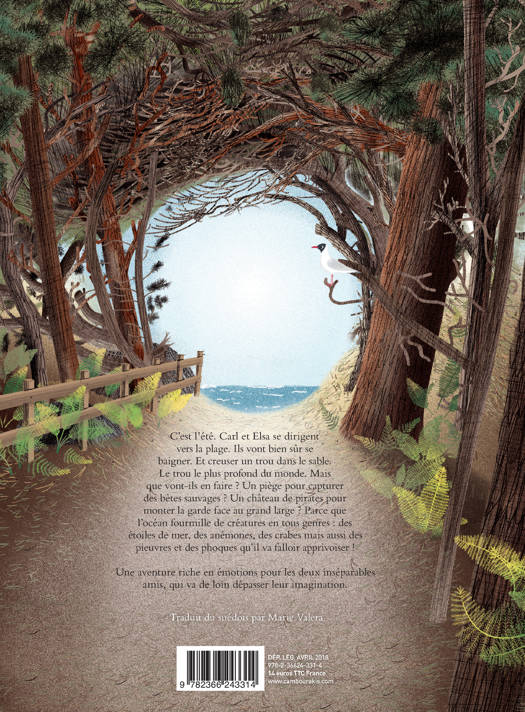 Après le succès de l'album «Carl et Elsa s'échappent», les nouvelles aventures des deux amis, cette fois au bord de la mer. À peine arrivés sur la plage, ils se précipitent dans l'eau. Ensuite, ils creusent une cabane dans le sable, s'y cachent et se retrouvent propulsés dans de grandes aventures maritimes où surgissent toutes sortes de créatures plus ou moins sauvages : cachalot, morse, mais aussi lion, otarie et poulpe. À travers ce parcours magnifiquement illustré, c'est une nouvelle fois une célébration de l'imaginaire enfantin qui est à l'oeuvre, toutes ces créatures animales rappelant autant les contes traditionnels que les récits d'aventures marines.
