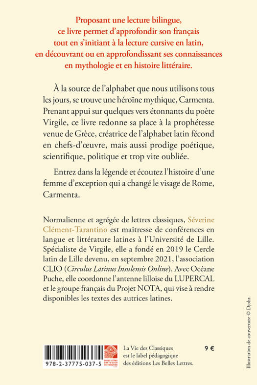 À la source de l’alphabet que nous utilisons tous les jours, se trouve une héroïne mythique, Carmenta. Prenant appui sur quelques vers étonnants du poète Virgile, ce livre redonne sa place à la prophétesse venue de Grèce, créatrice de l’alphabet latin fécond en chefs-d’œuvre, mais aussi prodige poétique, scientifique, politique et trop vite oubliée.