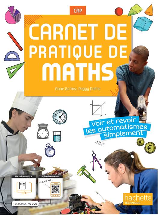 • L’acquisition des automatismes par le visuel et la manipulation. • Un carnet qui accompagne les élèves sur les deux années de CAP. • 47 fiches avec un point cours, un exemple corrigé et 6 à 8 exercices de difficulté croissante. • 75 % des exercices construits autour de schémas et d’explication visuelles pour rendre concret. • Niveau adapté aux élèves, progressif dans la difficulté et adapté à l’hétérogénéité des classes, pour une acquisition en douceur des automatismes. • Des exercices ludiques, avec des typologies variées (chercher l’erreur, casse-tête, calcul mental...). • De nombreux exercices ancrés dans la vie quotidienne et professionnelle des élèves. • Un carnet utilisable durant les heures d’AP, en classe entière et en co-intervention. • 27 tutos vidéo pour un accompagnement pas à pas de l’élève au fil des fiches.