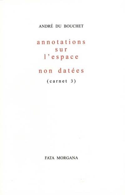 Ce troisième volume des Carnets (dont nous avons publié les deux premiers en 1994 et 1999) est présenté modestement par le poète lui-même comme le “volume final”. Ce sont, d’après le sous-titre, des “annotations sur l’espace non datées”. Plus de dates, plus de chronologies, mais, à travers les paroles de confidences, les “langues à traduire” ou l’“inarticulé des vocables”, toujours la voix du poète reste inscrite en mots “hésitants”, jouant avec l’espace jusque sur le blanc de page.