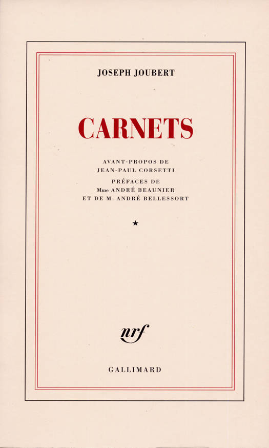 Rédigées entre 1774 et 1824, les "Pensées" de Joseph Joubert (1754-1824) ne feront l'objet d'une publication qu'en 1838, grâce aux soins de Chateaubriand. Cette édition très partielle sera suivie tout au long du XIXᵉ siècle par des parutions sans cesse enrichies, jusqu'à ce qu'André Beaunier, en 1938, offre au public ces deux tomes ne varietur des Carnets. L'oeuvre de Joubert accompagne l'entre-deux-siècles, tel un invisible fil d'Ariane. Elle en reflète les ombres comme le rayonnement, et ce n'est sans doute pas un hasard si sa poétique, oscillant entre les pleins et les déliés de la mémoire, et portée sans cesse au seuil de l'essai à travers l'étoffe légère du fragment, nous livre une peinture en clair-obscur de l'époque. Mais cette peinture laisse entrevoir le méandre d'une pensée qui, peu à peu, reconquiert son droit à l'introspection et à la réclusion. Les "gouttes de lumière" qu'égrène Joubert sont autant de sphères minuscules dans lesquelles la littérature, la musique ou la peinture réfléchissent une méditation de tous les instants. Attentif aux secrets du coeur et de l'âme des hommes, il parvint à saisir un peu de cette éternité qui gît dans les mots et que toute littérature a pour vocation d'exhumer. Jean-Paul Corsetti.