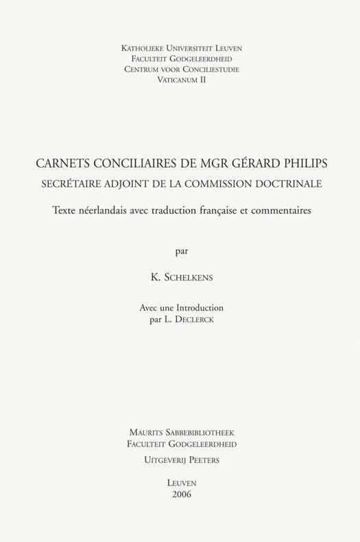 Dans l'histoire du Concile Vatican II, le theologien belge (Louvain) Gerard Philips (1899-1972) se montre un des acteurs principaux. En tant que secretaire adjoint de la Commission doctrinale du Concile, il a joue un grand role dans la redaction de plusieurs documents importants de Vatican II (Lumen Gentium, Dei Verbum, Gaudium et Spes...). La presente publication offre aux lecteurs une edition bilingue (texte originel neerlandais avec traduction francaise) des notes personnelles de Mgr Philips, avec dans les notes critiques un tas de precisions historiques, de documents non publies, et fournie d'une index des personnes offrant une notice biographique concernant chaque auteur. Cette edition du Journal Philips, qui contient souvent des pages emouvantes, donne ainsi un apercu unique de l'histoire conciliaire vu par un 'insider'...