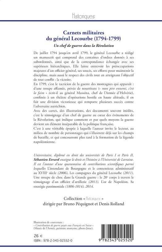 De juillet 1794 à avril 1799, le général Lecourbe a rédigé un manuscrit qui comprend les ordres donnés à ses subordonnés et sa correspondance avec ses supérieurs hiérarchiques. Elle laisse entrevoir les préoccupations d'un officier général, ses soucis, ses efforts pour maintenir la discipline, mais aussi le respect des civils tout en atteignant l'objectif de tout conflit : la victoire. En 1799, c'est le tacticien de la guerre des montagnes qui apparaît.