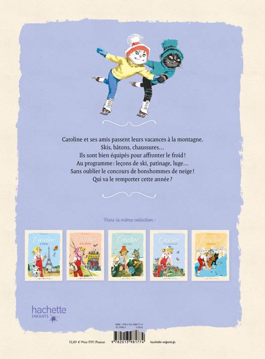 Caroline et ses amis passent leurs vacances à la montagne. Skis, bâtons, chaussures… Ils sont bien équipés pour affronter le froid ! Au programme : leçons de ski, patinage, luge… Sans oublier le concours de bonshommes de neige ! Qui va le remporter cette année ?