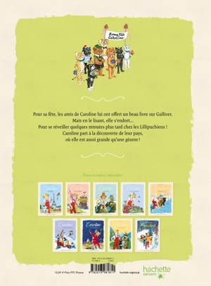 Pour sa fête, les amis de Caroline lui ont offert un beau livre sur Gulliver. Mais en le lisant, elle s'endort... Pour se réveiller quelques minutes plus tard chez les Lillipuchiens ! Caroline part à la découverte de leur pays, où elle est aussi grande qu'une géante !