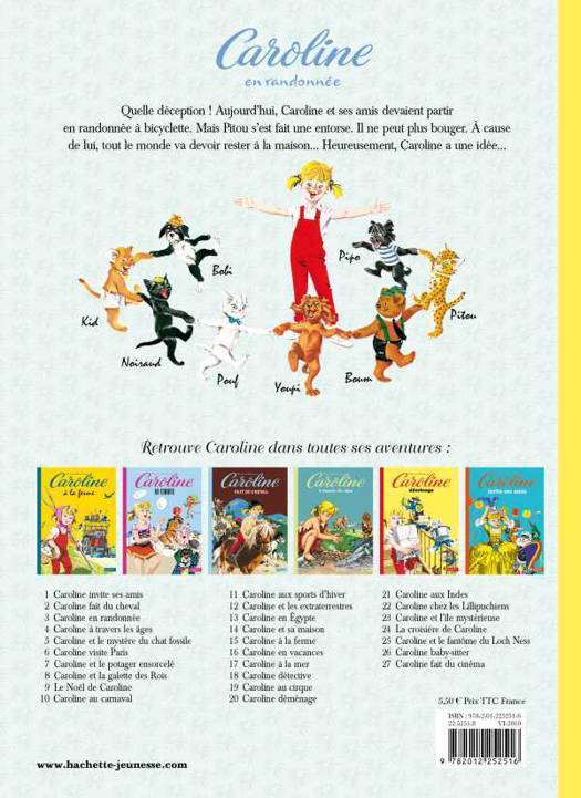 Caroline et ses amis devaient partir en randonnée à bicyclette. Mais Pitou s'est fait une entorse. Il ne peut plus bouger. À cause de lui, tout le monde va devoir rester à la maison… Heureusement, Caroline a une idée… et les voilà bientôt chantant tous sur les routes !