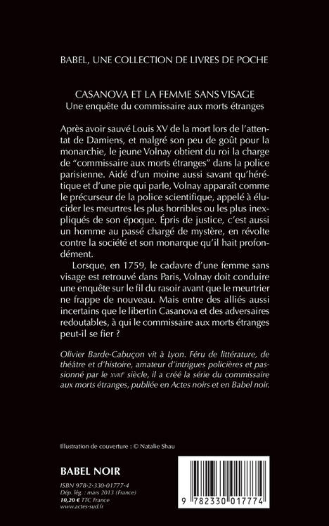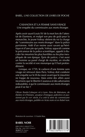 1759. Une femme sans visage est retrouvée dans Paris. Volnay, le "commissaire aux morts étranges", se charge de l'enquête. Surveillé de près par Sartine, qui voit d'un mauvais oeil ce policier hors normes, Volnay, secondé par un moine étrange et Casanova lui-même, remonte la piste d'un crime qui pourrait impliquer la Pompadour et Louis XV en personne. L'épisode inaugural d'une formidable série policière historique.
