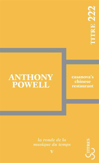 Casanova's Chinese Restaurant est le cinquième tome de l'oeuvre majeure d'Anthony Powell, La Ronde de la musique du temps. En douze tomes, cette grande fresque embrasse la société anglaise de 1914 à 1970, avec ses grandeurs et ses illusions.