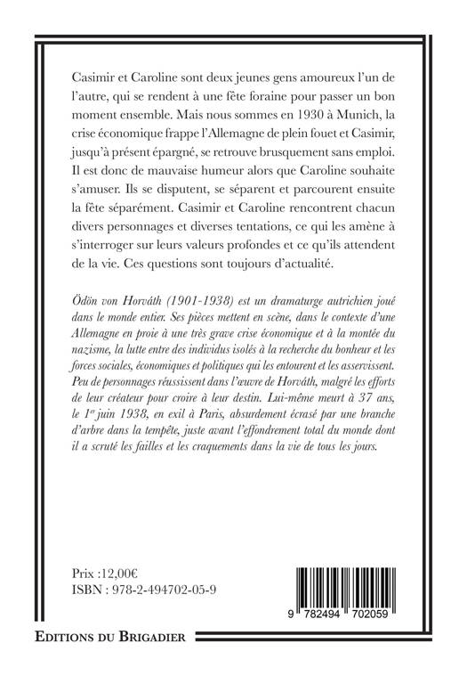 Casimir et Caroline sont deux jeunes gens amoureux l’un de l’autre, qui se rendent à une fête foraine pour passer un bon moment ensemble. Mais nous sommes en 1930 à Munich, la crise économique frappe l’Allemagne de plein fouet et Casimir, jusqu’à présent épargné, se retrouve brusquement sans emploi. Il est donc de mauvaise humeur alors que Caroline souhaite s’amuser. Ils se disputent, se séparent et parcourent ensuite la fête séparément. Casimir et Caroline rencontrent chacun divers personnages et diverses tentations, ce qui les amène à s’interroger sur leurs valeurs profondes et ce qu’ils attendent de la vie. Ces questions sont toujours d’actualité.