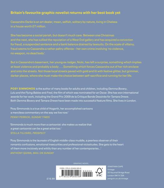 Cassandra Darke is an art dealer, mean, selfish, solitary by nature, living in Chelsea in a house worth £7 million. She has become a social pariah, but doesn't much care. Between one Christmas and the next, she has sullied the reputation of a West End gallery and has acquired a conviction for fraud, a suspended sentence and a bank balance drained by lawsuits. On the scale of villainy, fraud seems to Cassandra a rather paltry offense--her own crime involving '"no violence, no weapon, no dead body." But in Cassandra's basement, her young ex-lodger, Nicki, has left a surprise, something which implies at least violence and probably a body. Something which forces Cassandra out of her rich enclave and onto the streets. Not those local streets paved with gold and lit with festive glitter, but grimmer, darker places, where she must make the choice between self-sacrifice and running for her life.