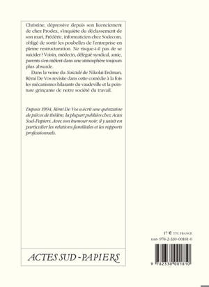 Dans la veine du «Suicidé» de Nikolai Erdman, Rémi De Vos revisite dans cette comédie à la fois les mécanismes hilarants du vaudeville et la peinture grinçante de notre société du travail.