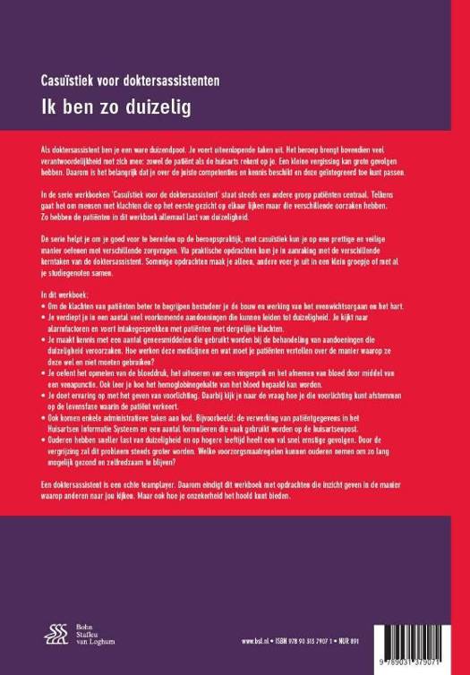 Als doktersassistent ben je een ware duizendpoot. Je voert uiteenlopende taken uit. Het beroep brengt bovendien veel verantwoordelijkheid met zich mee: zowel de patiënt als de huisarts rekent op je. Een kleine vergissing kan grote gevolgen hebben. Daarom is het belangrijk dat je over de juiste competenties en kennis beschikt en deze geïntegreerd toe kunt passen.In de serie werkboeken ‘Casuïstiek voor de doktersassistent’ staat steeds een andere groep patiënten centraal. Telkens gaat het om mensen met klachten die op het eerste gezicht op elkaar lijken maar die verschillende oorzaken hebben. Zo hebben de patiënten in dit werkboek allemaal last van duizeligheid.De serie helpt je om je goed voor te bereiden op de beroepspraktijk, met casuïstiek kun je op een prettige en veilige manier oefenen met verschillende zorgvragen. Via praktische opdrachten kom je in aanraking met de verschillende kerntaken van de doktersassistent. Sommige opdrachten maak je alleen, andere voer je uit in een klein groepje of met al je studiegenoten samen.In dit werkboek: • Om de klachten van patiënten beter te begrijpen bestudeer je de bouw en werking van het evenwichtsorgaan en het hart. • Je verdiept je in een aantal veel voorkomende aandoeningen die kunnen leiden tot duizeligheid. Je kijkt naar alarmfactoren en voert intakegesprekken met patiënten met dergelijke klachten.• Je maakt kennis met een aantal geneesmiddelen die gebruikt worden bij de behandeling van aandoeningen die duizeligheid veroorzaken. Hoe werken deze medicijnen en wat moet je patiënten vertellen over de manier waarop ze deze wel en niet moeten gebruiken?• Je oefent het opmeten van de bloeddruk, het uitvoeren van een vingerprik en het afnemen van bloed door middel van een venapunctie. Ook leer je hoe hethemoglobinegehalte van het bloed bepaald kan worden.• Je doet ervaring op met het geven van voorlichting. Daarbij kijk je naar de vraag hoe je die voorlichting kunt afstemmen op de levensfase waarin de patiënt verkeert.• Ook komen enkele administratieve taken aan bod. Bijvoorbeeld: de verwerking van patiëntgegevens in het Huisartsen Informatie Systeem en een aantal formulieren die vaak gebruikt worden op de huisartsenpost.• Ouderen hebben sneller last van duizeligheid en op hogere leeftijd heeft een val snel ernstige gevolgen. Door de vergrijzing zal dit probleem steeds groter worden. Welke voorzorgsmaatregelen kunnen ouderen nemen om zo lang mogelijk gezond en zelfredzaam te blijven?Een doktersassistent is een echte teamplayer. Daarom eindigt dit werkboek met opdrachten die inzicht geven in de manier waarop anderen naar jou kijken. Maar ook hoe je onzekerheid het hoofd kunt bieden.