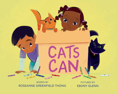 Whether they’re stretching and scheming, playing or dreaming, cats love to make mischief, sneak snacks, and cuddle up in a cozy spot, just like . . . kids! Cats Can proves that kittens and kids are more alike than we think. Roseanne Greenfield Thong’s rhyming romp is perfectly matched by the vibrant, energetic illustrations of Ebony Glenn in this playful read-aloud.
