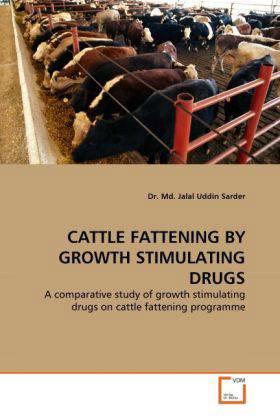 The aim of the study was to evaluate the growth stimulating drugs (GSD) on growth performance, haematology, feed conversion ratio (FCR), dressing % and meat quality of cattle. The GSD had significant effect on daily body weight gain of cattle. The daily average live weight gain by vitamin, Tonic powder, steroids, tonic drugs-parenteral, iodine+UMS and no drugs were 566, 775, 541, 525, 675 and 683 gm/day, respectively. Total erythrocyte count in all treated groups increased significantly. After treatment the Haemoglobin % increases significantly. FCR was lowest (4.90) in tonic powder-oral and highest (7.23) in tonic drugs-parenteral. Significantly the highest dressing (55.57) % was observed in control group and the lowest (45.97%) in group of tonic drugs- parenteral. The dry matter, crude protein, ether extraction and ash values were found to be significantly increased in iodine (parenteral)+tonic powder (oral) group. It is concluded that to increase meat production in a very cheapest way to may be the use of tonic powder-oral (Growth tonic powder, Speed care) + Caldee plus bolus, Speed care) and Iodine-parenteral+UMS-oral (Inj. Lugol's iodine (2%) solution+UMS) administration.